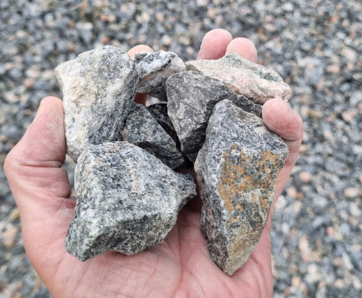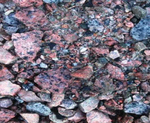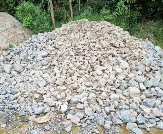 Pedrisco utilizado em artefatos de cimento, blocos, finas colunas e espalhados em pátios.