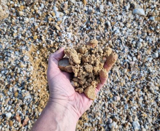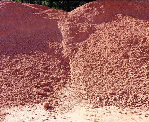 Saibro virgem, utilizado em compactação e regularização de solo.